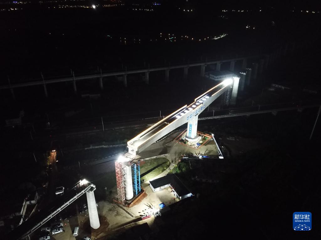 貴南高鐵引入貴陽樞紐鐵路尖坡寨特大橋轉體成功