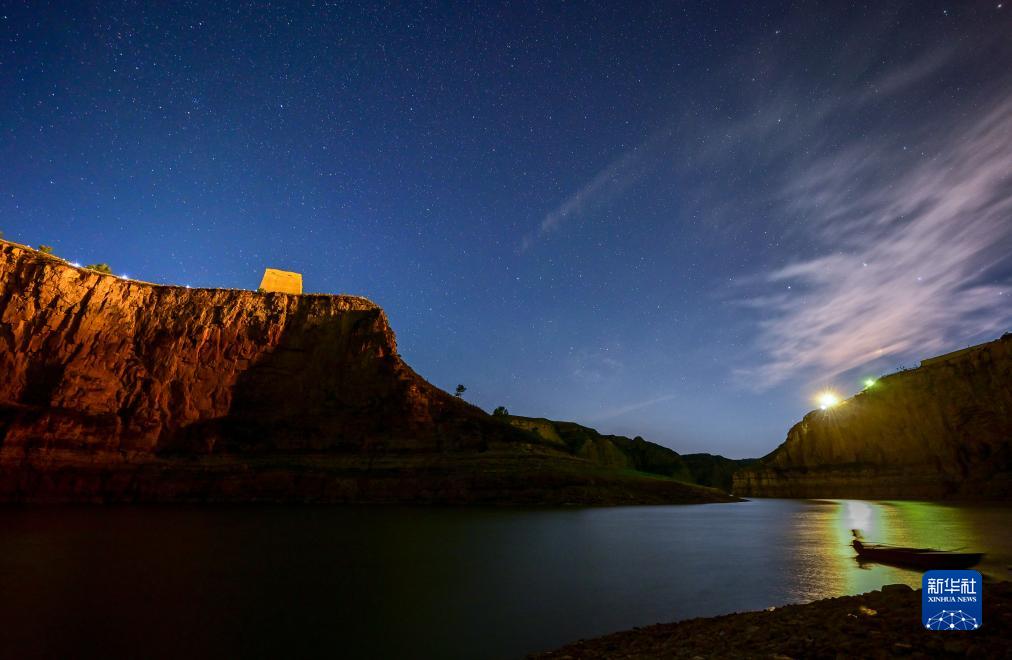黃河老牛灣位于內蒙古自治區(qū)和山西省交界處。夜空下,峽谷兩岸壁立千仞,黃河奔流不息,明長城依山而行,風光壯美。