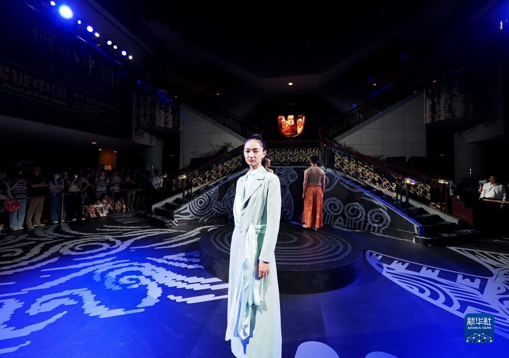 8月25日晚,模特在上博“研色·良渚之夜”綜合藝術秀上展示時裝。