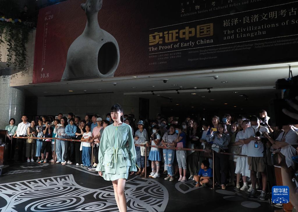 8月25日晚,模特在上博“研色·良渚之夜”綜合藝術秀上展示時裝。新華社記者 任瓏 攝