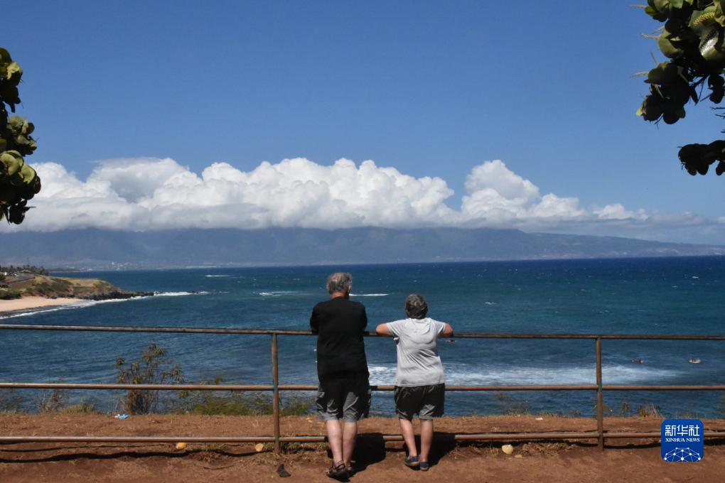 8月23日,兩名游客在美國夏威夷毛伊島一處海灘觀景。