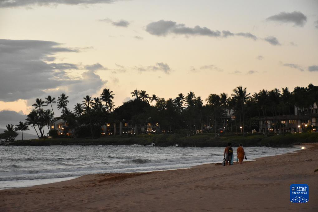8月23日,游客走在美國夏威夷毛伊島的海灘上。