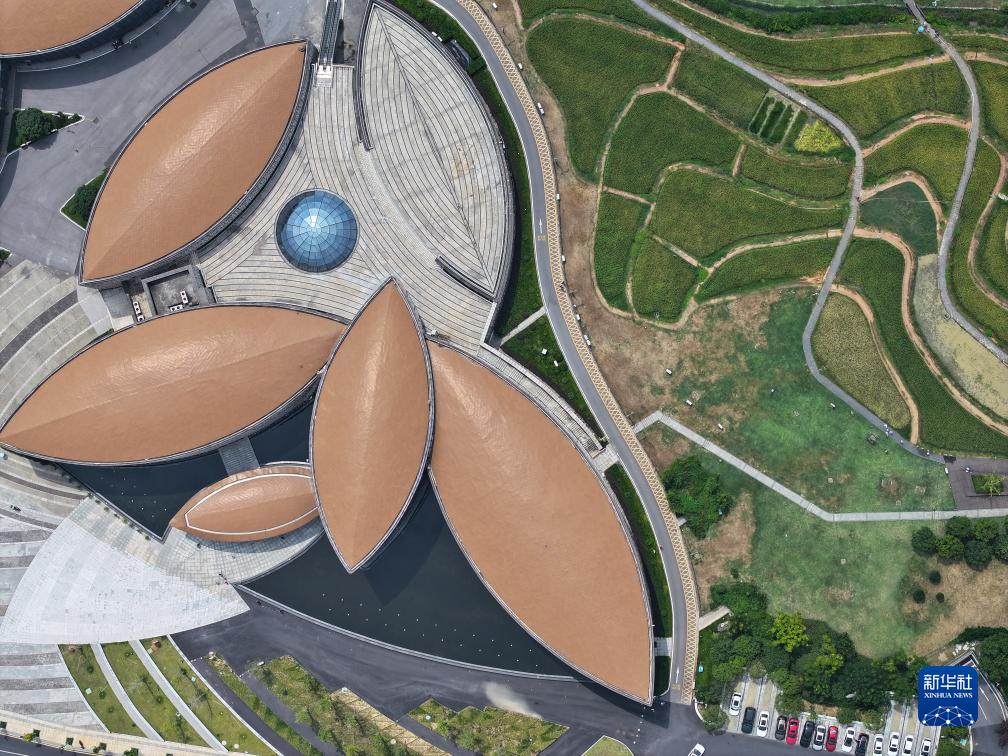 這是8月26日拍攝的長沙市芙蓉區的隆平水稻博物館及旁邊的稻田(無人機照片)。