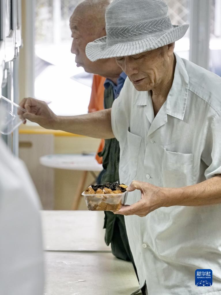 8月26日,十里堡社區的老年人在老年餐廳購買午飯。
