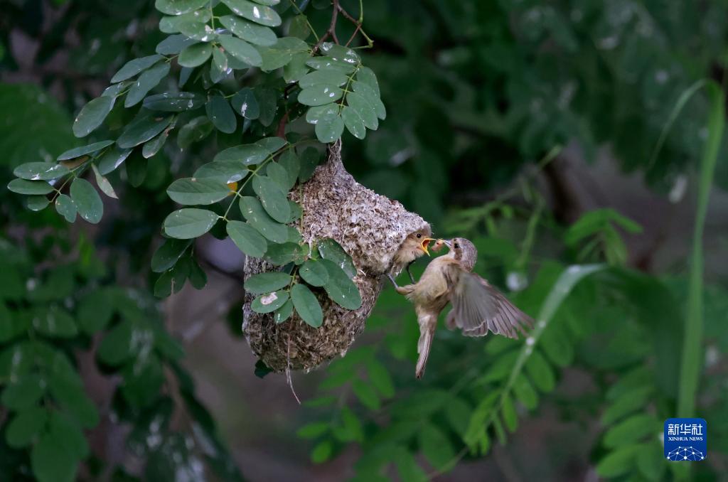 近日,被譽為“鳥類建筑師”的中華攀雀在河北省唐山市豐南區沿海濕地開始育雛,成鳥在樹林中飛舞著撲捉昆蟲、幼鳥小心翼翼地將頭探出巢穴等待成鳥歸來的場景,形成一幅和諧美麗的自然畫卷。