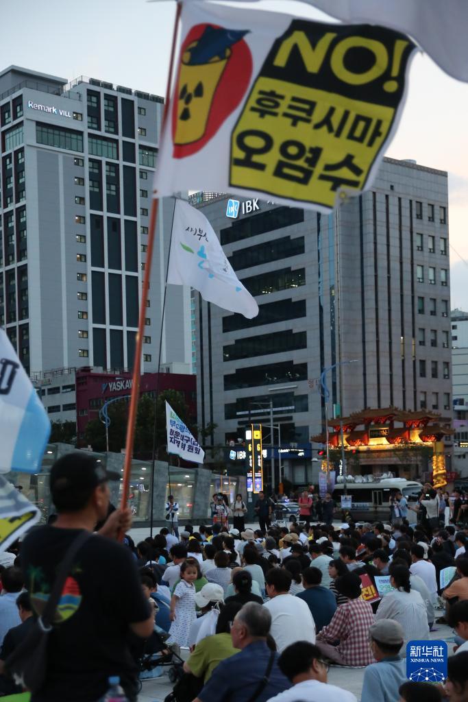 8月26日,市民在韓國(guó)釜山火車站廣場(chǎng)前參加集會(huì)。