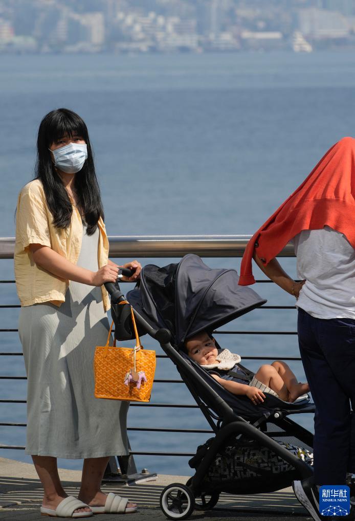 8月26日,在加拿大溫哥華,市民在煙霧籠罩的海濱休閑。