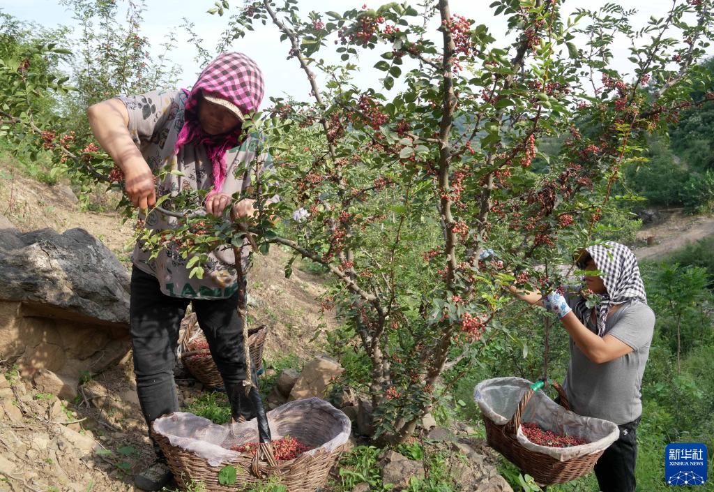 8月26日,秦皇島市海港區石門寨鎮南峪村的農民在采摘花椒。