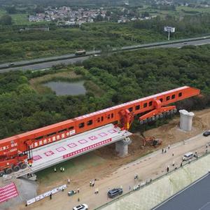 8月27日,在中國鐵建大橋局新建上海至南京至合肥高速鐵路箱梁架設現場,隨著重930噸的箱梁穩穩地架設在合肥肥東南鷹莊特大橋橋墩上,標志著新建滬寧合高鐵全線首榀箱梁成功架設,施工進入全線架梁階段。