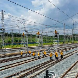 當(dāng)日,中國鐵路南寧局集團(tuán)有限公司南寧供電段的接觸網(wǎng)工對南寧第二動車所存車線內(nèi)26條股道中達(dá)到檢調(diào)標(biāo)準(zhǔn)的股道進(jìn)行檢查,為即將全線開通的貴南高鐵做準(zhǔn)備。