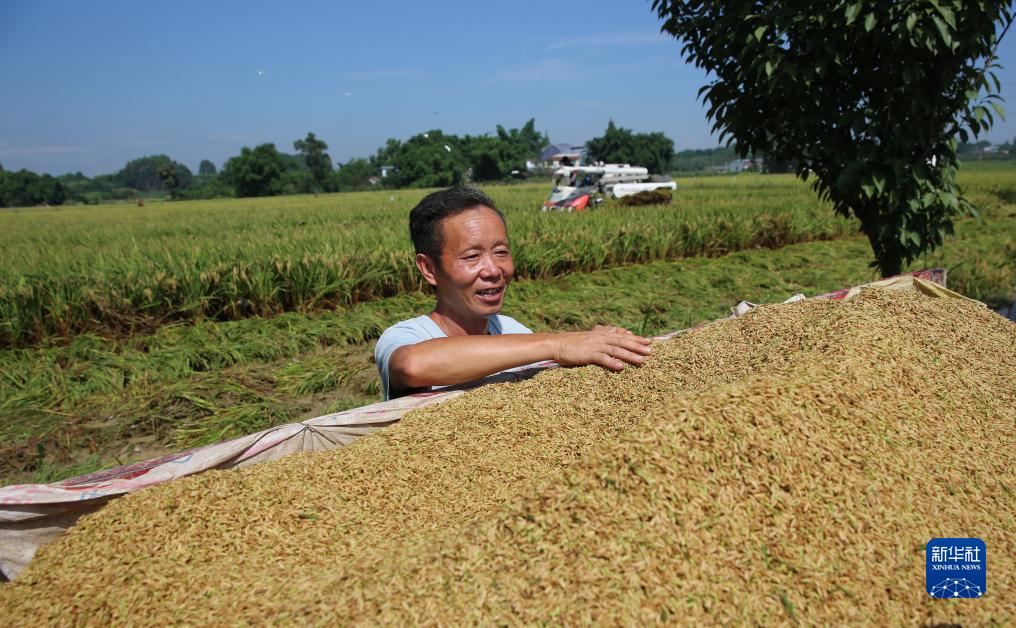 8月27日,四川省眉山市東坡區(qū)太和鎮(zhèn)四維村村民在收獲水稻。