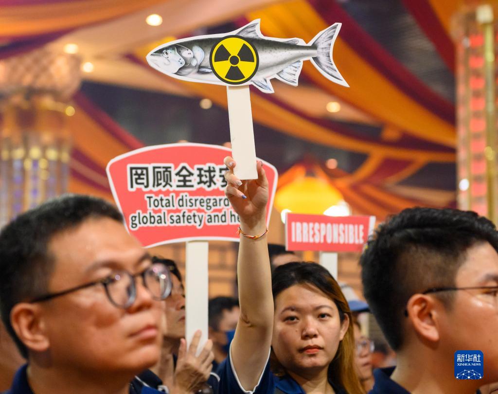8月27日,在馬來西亞雪蘭莪州士毛月,人們參加反對日本核污染水排海的集會。