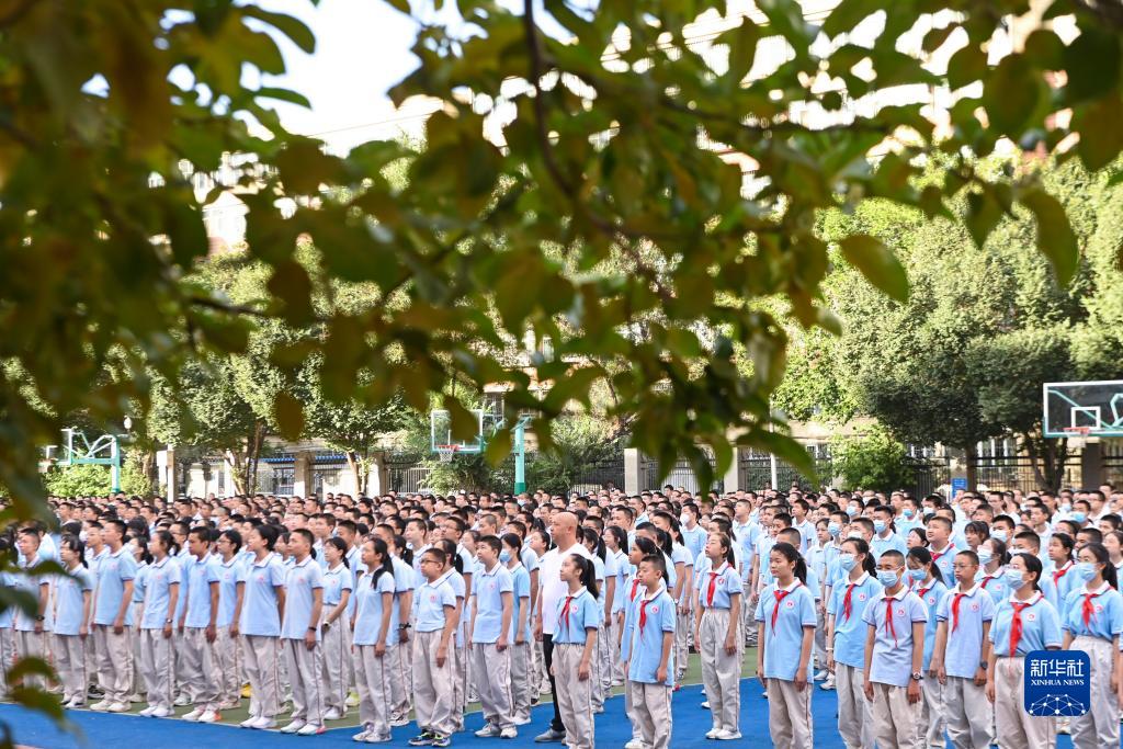 當日,烏魯木齊各中小學開學,師生迎接新學年的開始。