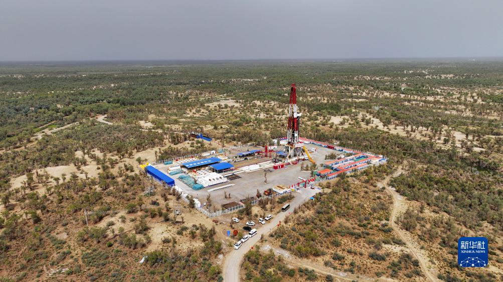 8月21日拍攝的中國石化塔里木盆地“深地工程”躍進(jìn)3-3XC油氣井。該井設(shè)計(jì)井深9472米,截至8月28日,鉆探深度已達(dá)8471米(無人機(jī)照片)。