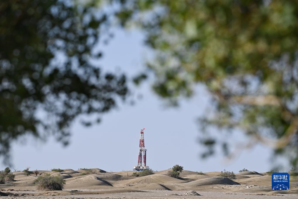 位于新疆塔里木盆地的我國首個萬米深地科探井“深地塔科1井”(5月30日攝)。