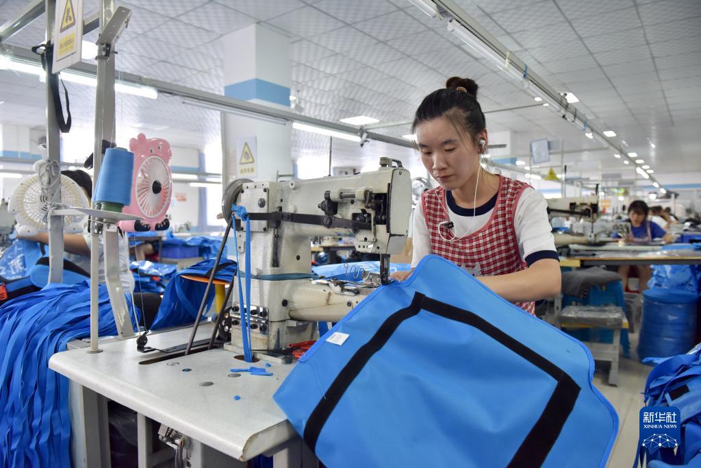 8月29日,工人在河北省威縣姜七里村一家箱包廠加工箱包。