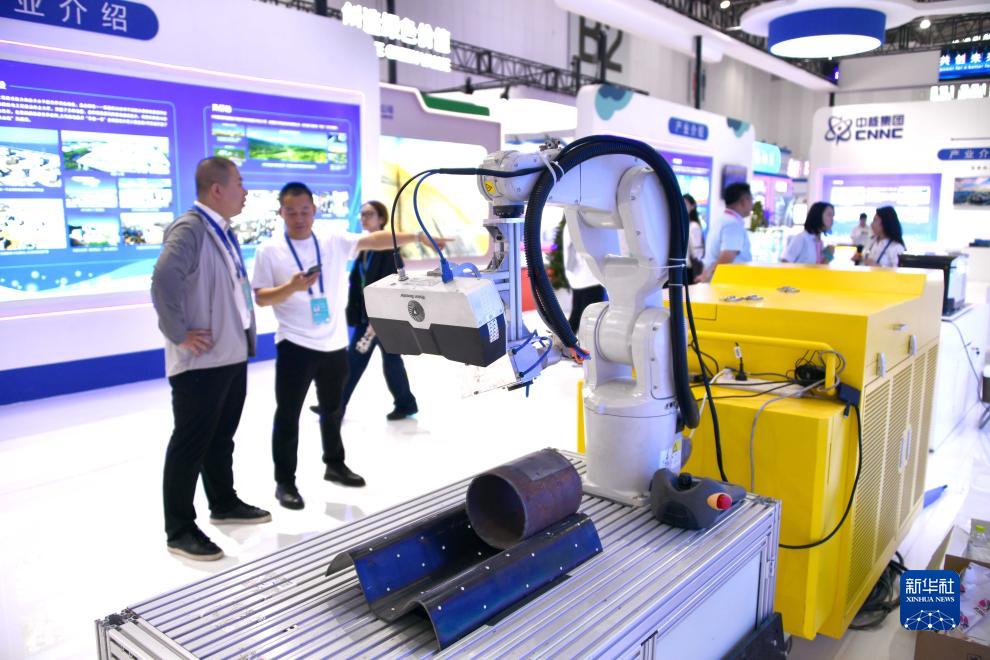 這是在2023綠色低碳高質(zhì)量發(fā)展大會裝備展上展出的高功率激光應(yīng)用設(shè)備(8月29日攝)。