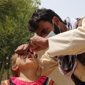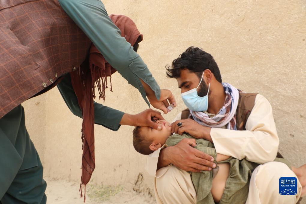 8月29日,醫務人員在阿富汗朱茲詹省為一名兒童接種脊髓灰質炎疫苗。