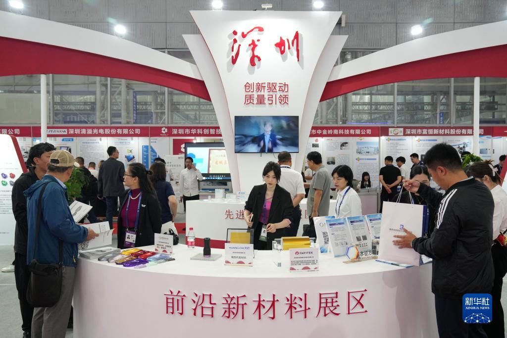8月29日,參會者在前沿新材料展區了解情況。