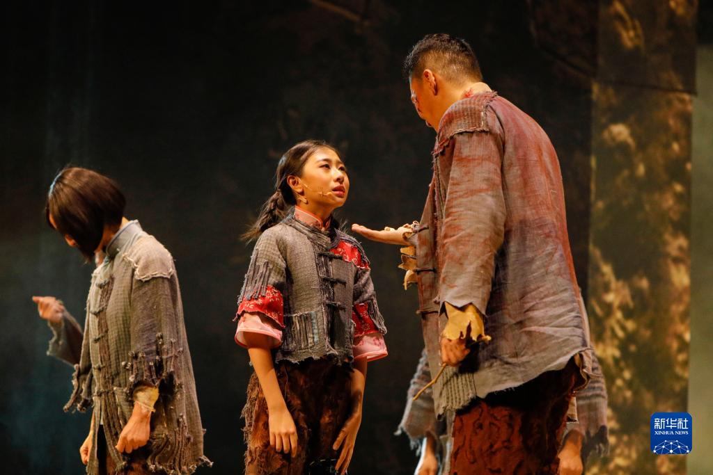 8月29日晚,演員在蘭州音樂廳表演新版紅色兒童劇《大豆謠》。