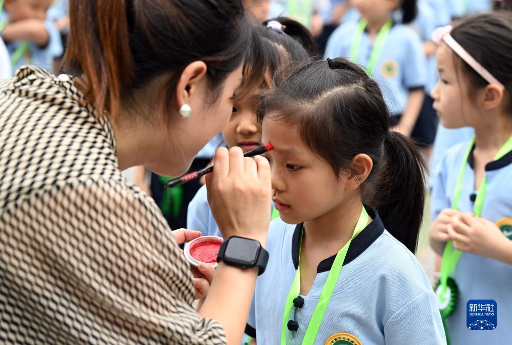 8月30日,在安徽省合肥市屯溪路小學,老師為一年級新生點朱砂啟智,讓孩子體驗傳統文化,迎接新學期。