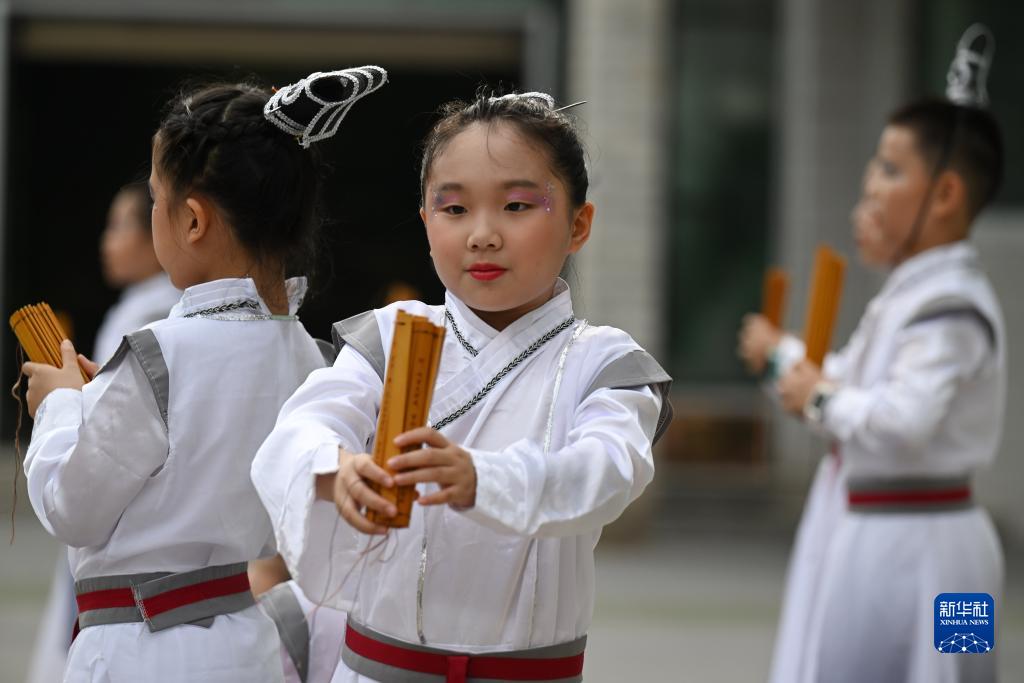 8月30日,在安徽省合肥市屯溪路小學,學生表演誦讀《千字文》,體驗傳統文化,迎接新學期。
