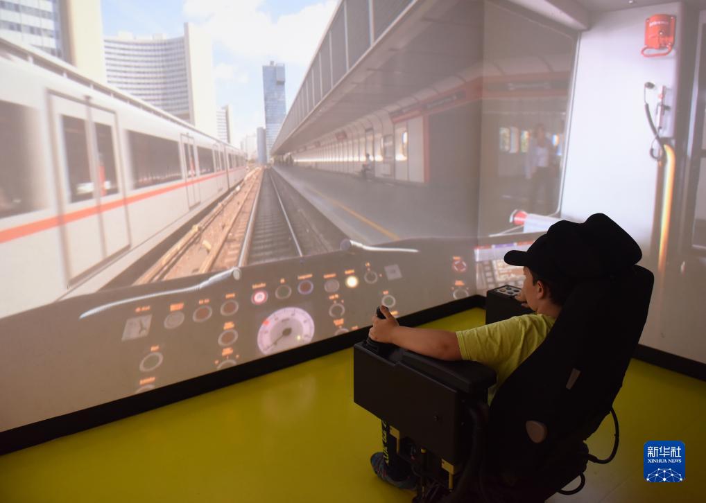 8月30日,在奧地利維也納交通博物館,觀眾模擬體驗(yàn)地鐵列車駕駛。
