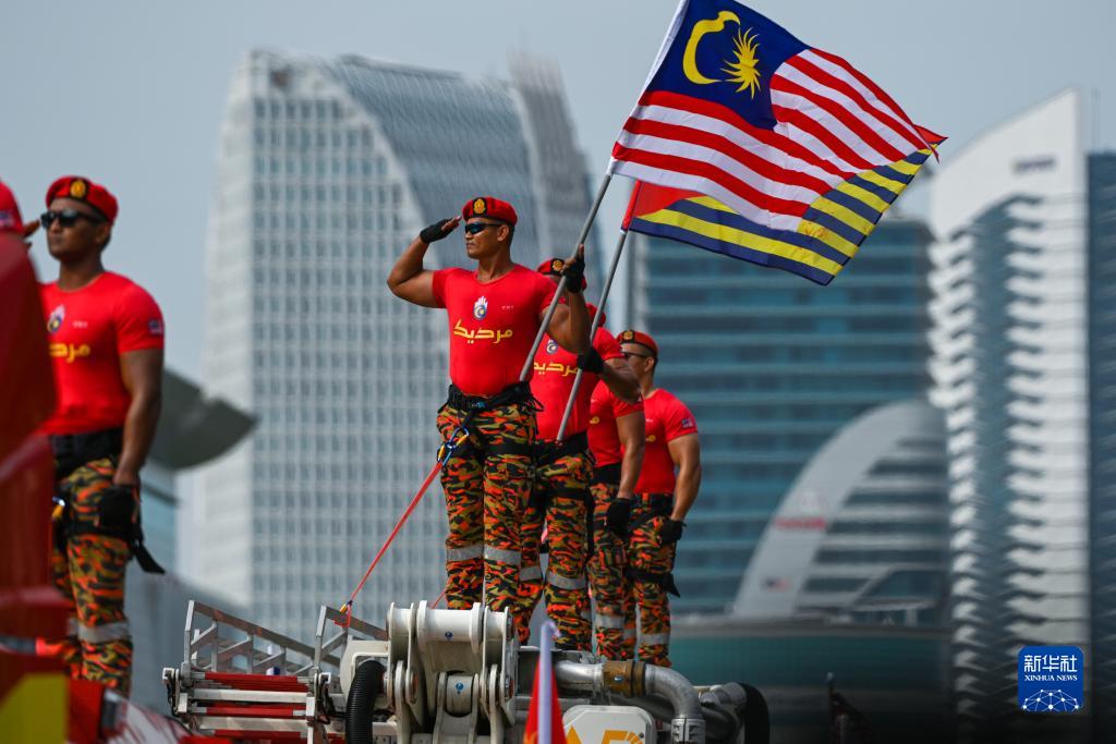 8月31日,消防員在馬來(lái)西亞普特拉賈亞參加馬來(lái)西亞獨(dú)立66周年慶典活動(dòng)。