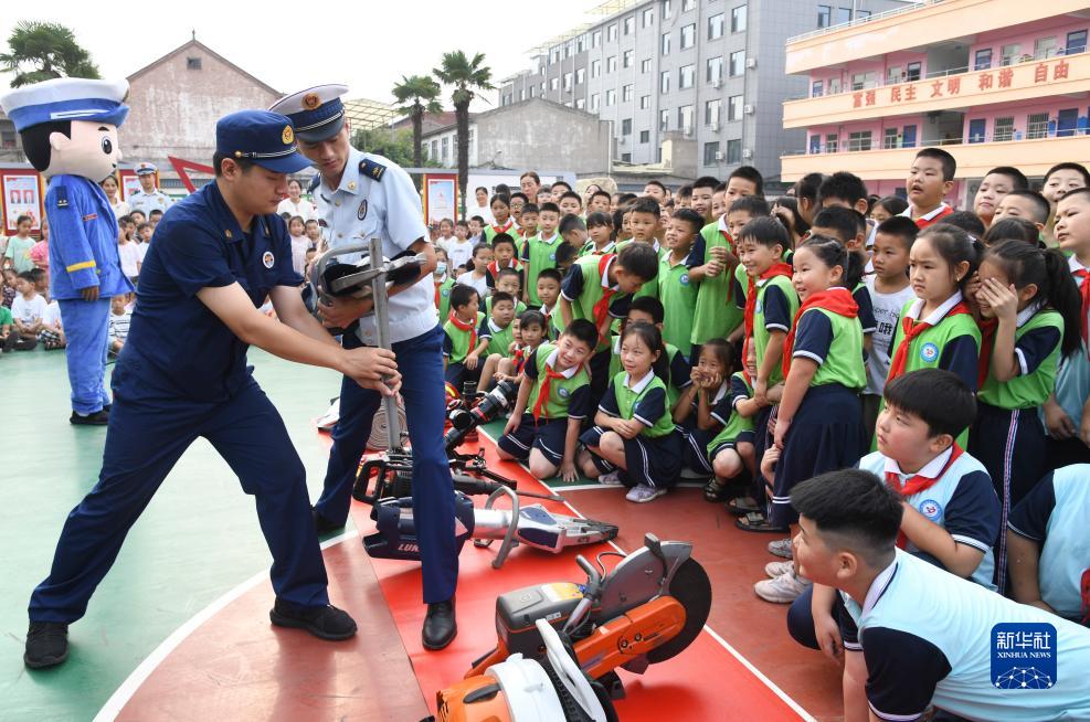 9月1日,在河南省濟(jì)源市文昌路小學(xué),濟(jì)源市消防救援支隊消防員為學(xué)生介紹消防救援設(shè)備。
