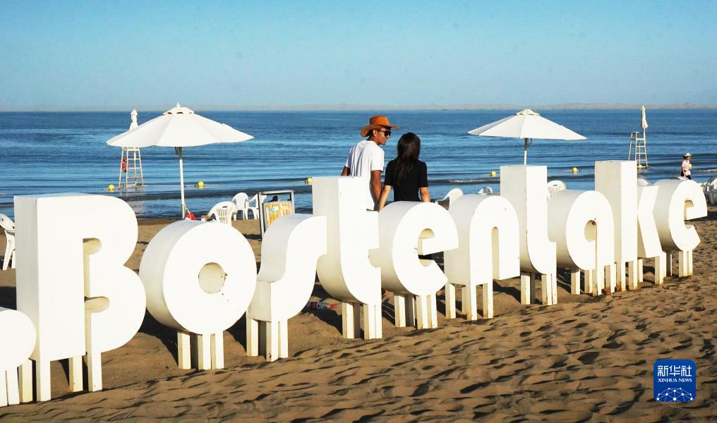 8月31日,游客在新疆博斯騰湖大河口景區游玩。