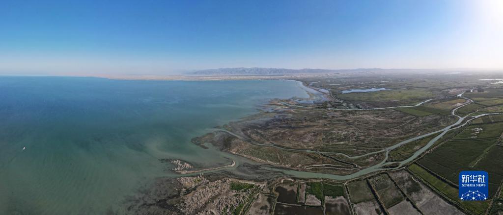開都河匯入新疆博斯騰湖(8月31日攝,無人機全景照片)。