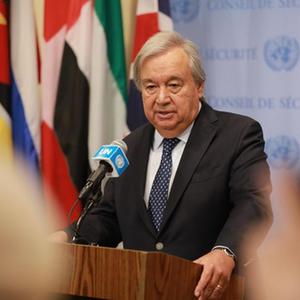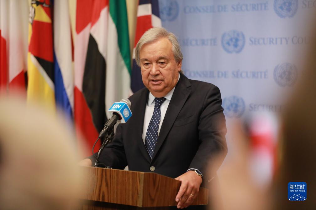 8月31日,聯合國秘書長古特雷斯在位于紐約的聯合國總部舉行的新聞發布會上講話。