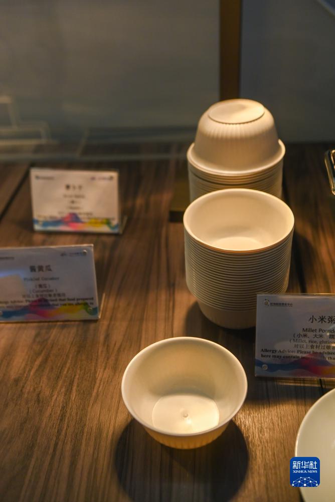 這是主媒體中心媒體記者餐廳內(nèi)使用的可降解環(huán)保餐具(9月1日攝)。