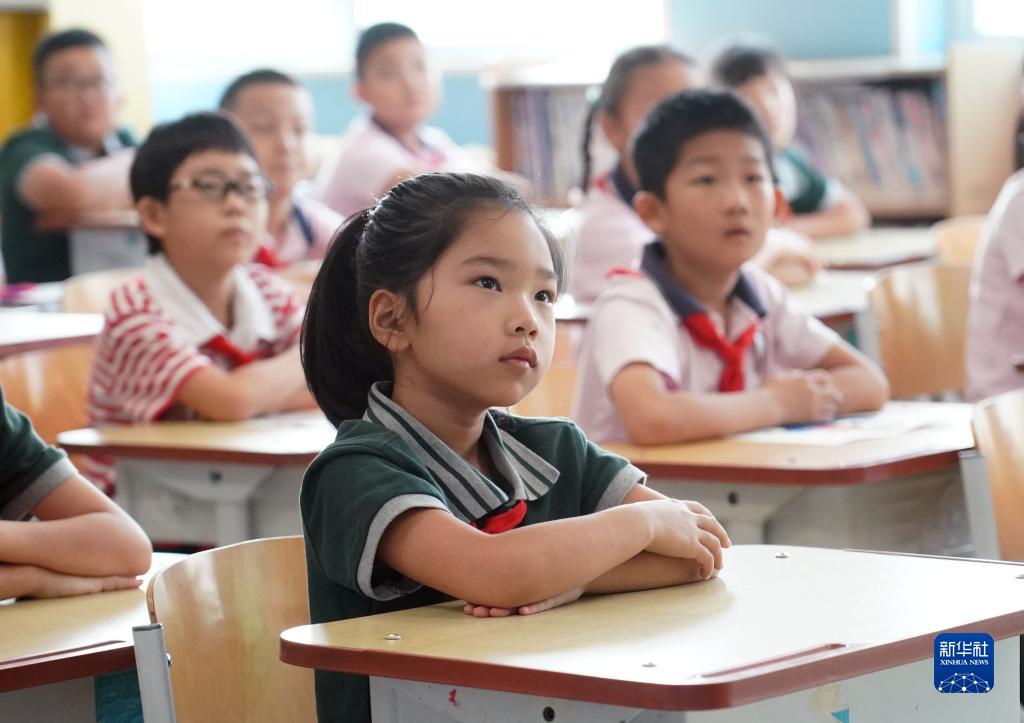 9月1日,在北京市門頭溝區京師實驗小學,三年級(1)班的學生上開學第一課。