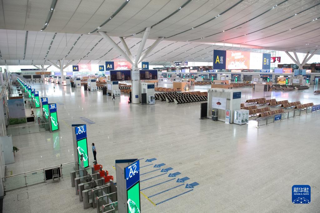 9月1日,在深圳北站,工作人員在進站口前值守。1日11時10分起,進出深圳地區所有車站的列車全部停運。