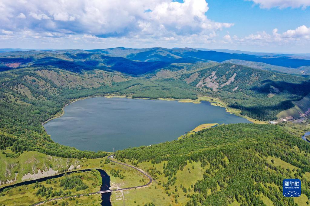 這是9月1日拍攝的阿爾山國家森林公園烏蘇浪子湖景色(無人機照片)。