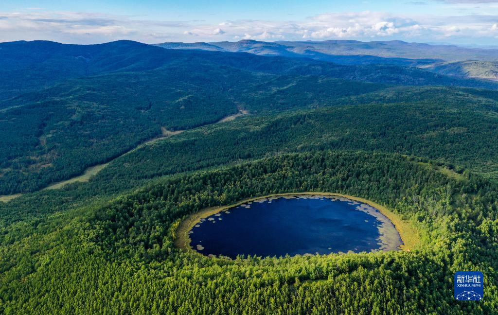 這是8月31日拍攝的阿爾山國(guó)家森林公園阿爾山天池景色(無(wú)人機(jī)照片)。