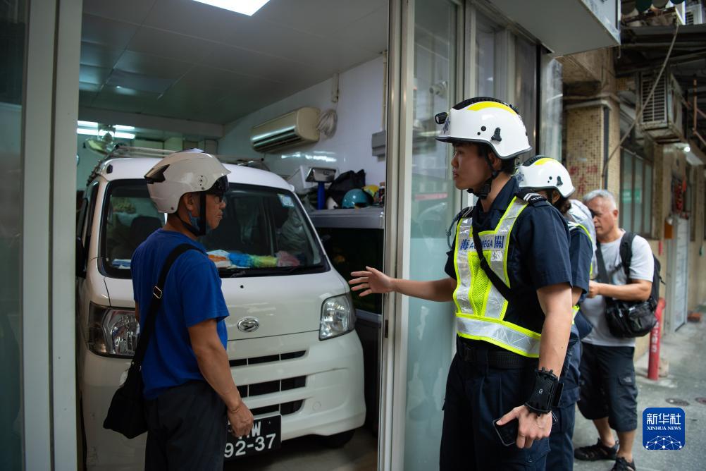 9月1日,澳門海關人員勸說低洼地區人員疏散撤離。