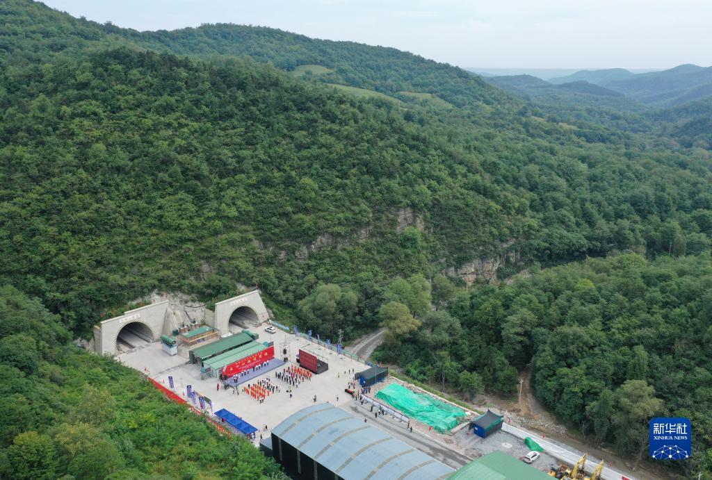 這是位于陜西省寶雞市麟游縣的麟法高速石臼山隧道(無人機照片,9月1日攝)。