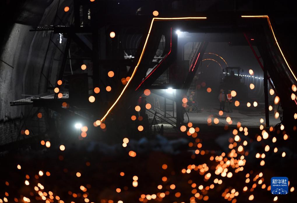 9月1日,施工人員在位于陜西省寶雞市麟游縣的麟法高速石臼山隧道內施工。