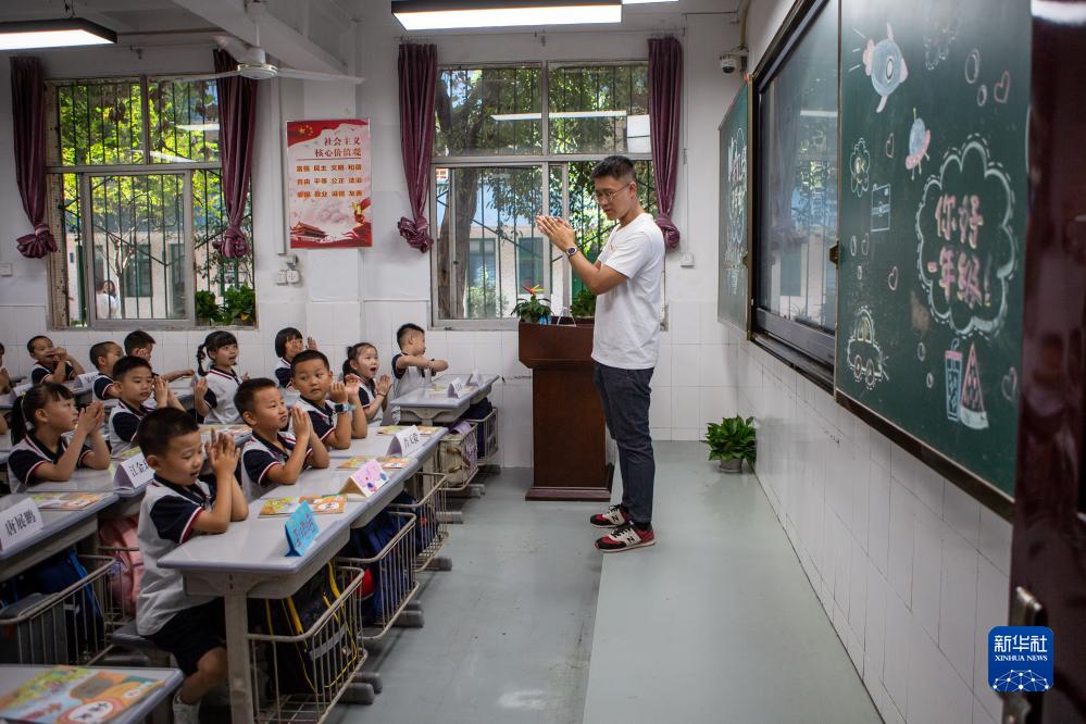 9月1日,在重慶育才實驗學校華巖校區,豆豆(右三)在教室內上課。
