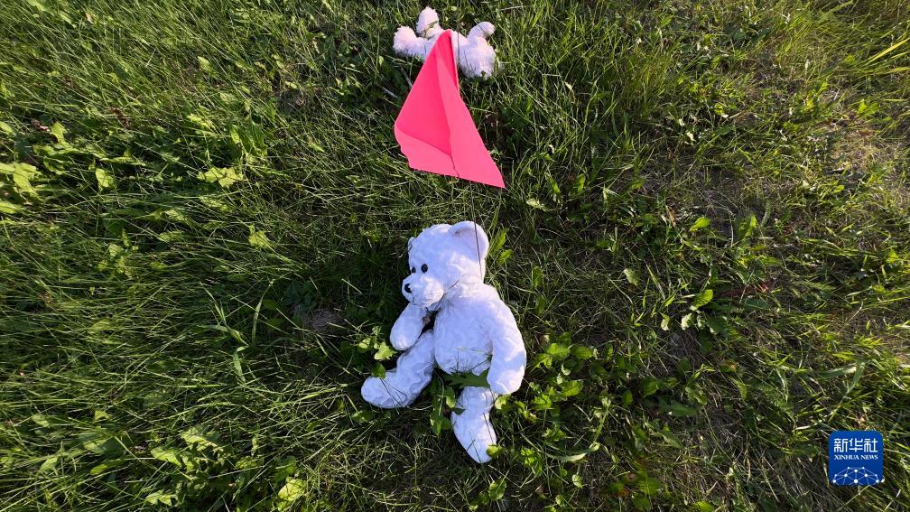 這是8月31日在加拿大薩斯喀徹溫省博瓦爾印第安人寄宿學(xué)校舊址拍攝的用粉色旗子標(biāo)出的疑似兒童或嬰兒墓地。