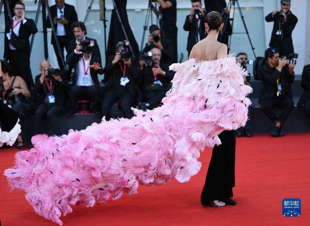 9月1日,在意大利威尼斯,一名嘉賓亮相電影《可憐的東西》首映式紅毯。