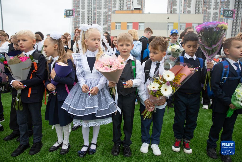 俄羅斯圣彼得堡第362學校1日舉行開學典禮,學校也迎來今年入學的一年級學生。9月1日是俄羅斯一年一度的“知識日”,意味著新學年的開始。