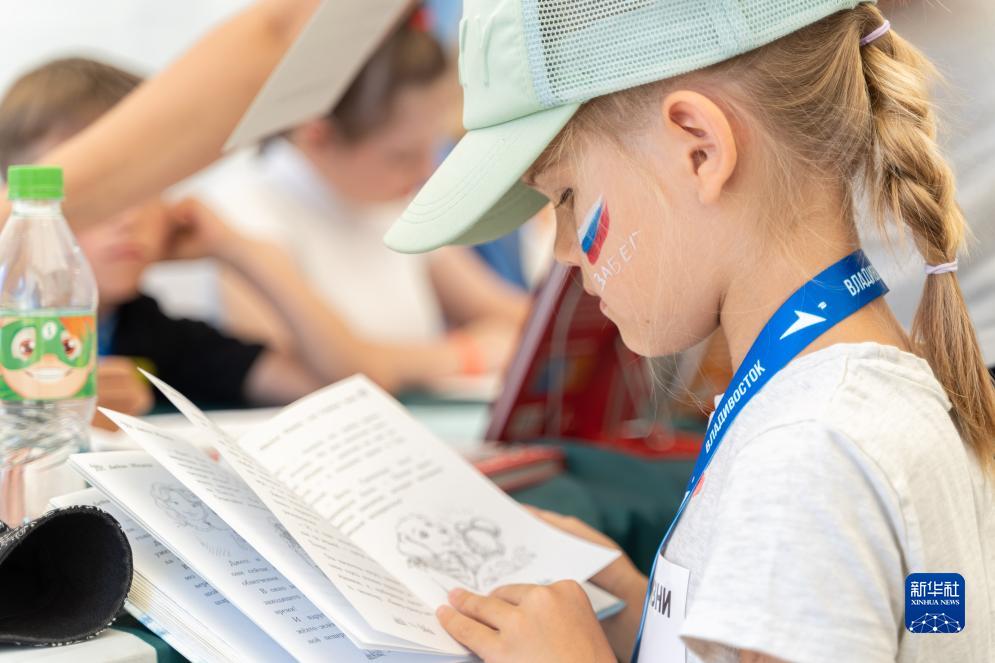 9月2日,在俄羅斯符拉迪沃斯托克舉辦的“知識日”活動上,一名兒童閱讀圖書。
