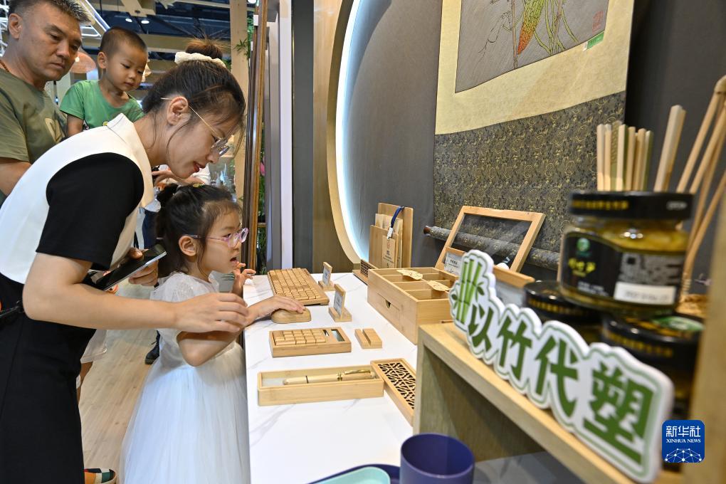 9月2日,觀眾在服貿會上體驗竹制鼠標鍵盤。