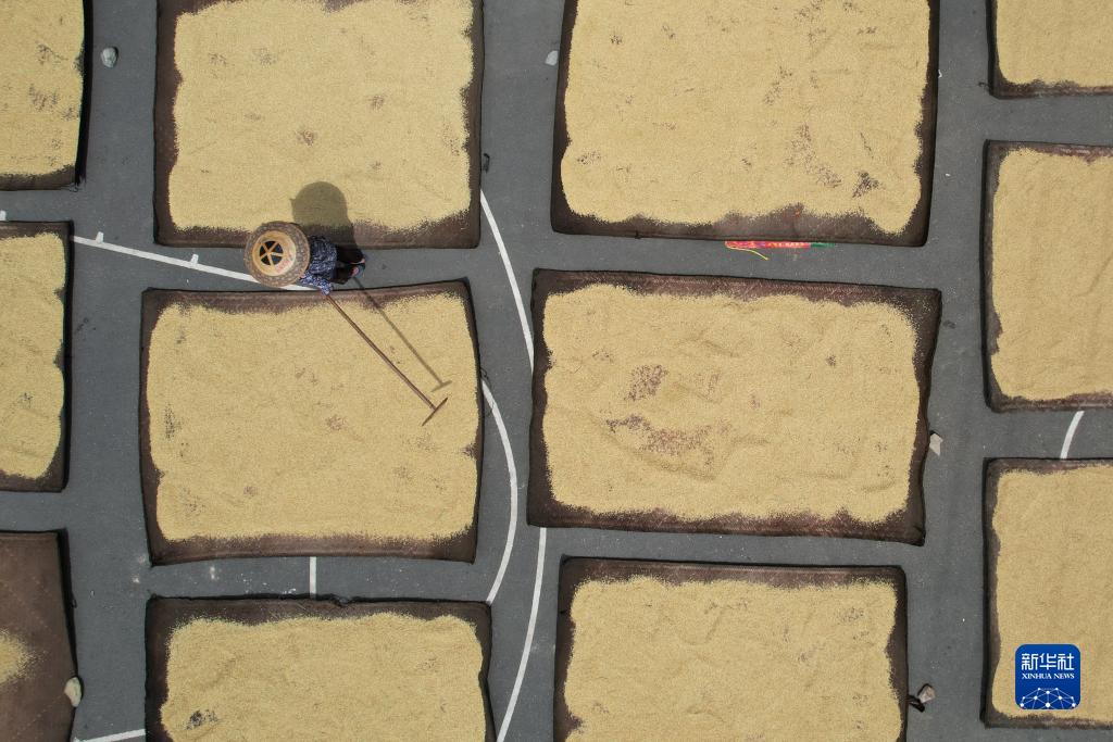初秋時節,農作物相繼成熟,人們忙著搶收、搶曬,到處是美麗的曬秋圖景。