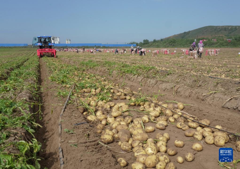 9月3日,河北省圍場滿族蒙古族自治縣御道口鎮御道口村一家馬鈴薯種植合作社社員在收獲馬鈴薯。