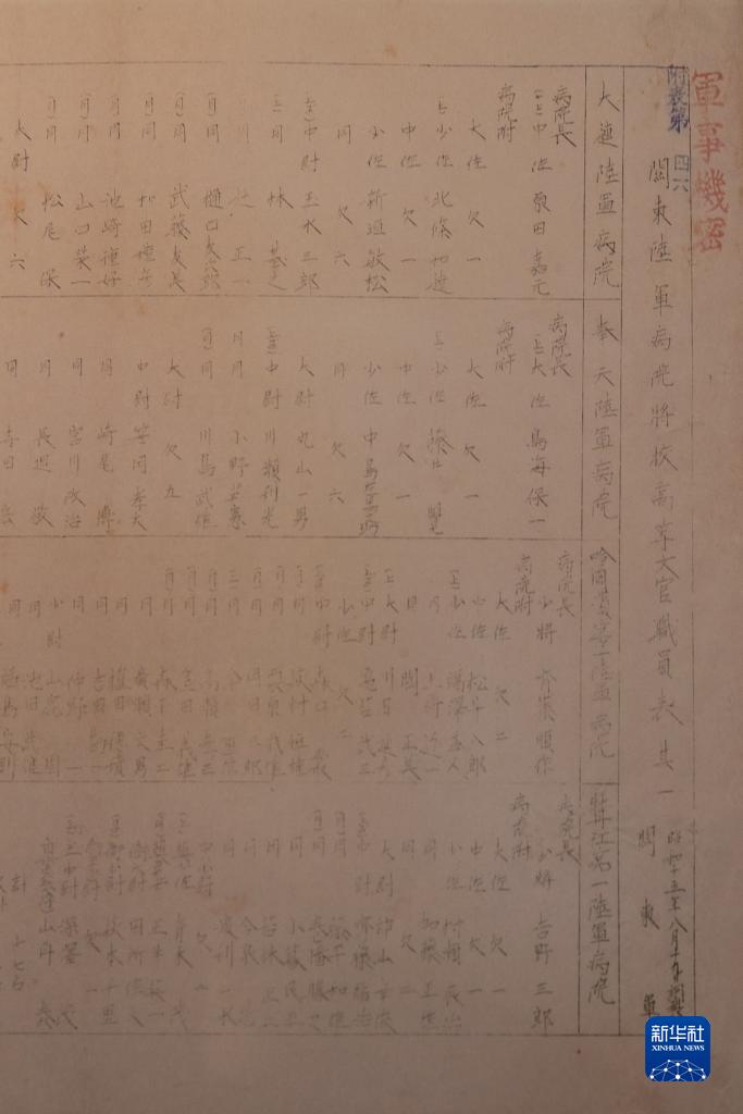 這是在侵華日軍第七三一部隊(duì)罪證陳列館拍攝的《關(guān)東陸軍病院將校高等文官職員表》(影印件)(9月2日攝)。