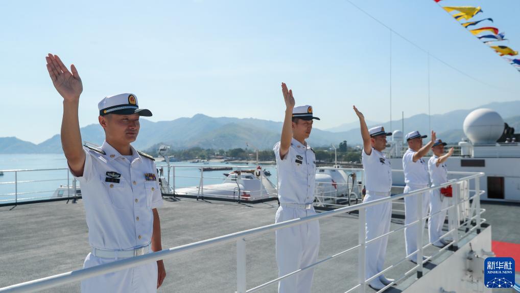 9月3日,中國海軍“和平方舟”號醫(yī)院船抵達東帝汶帝力港,任務(wù)官兵向迎接人群揮手致意。